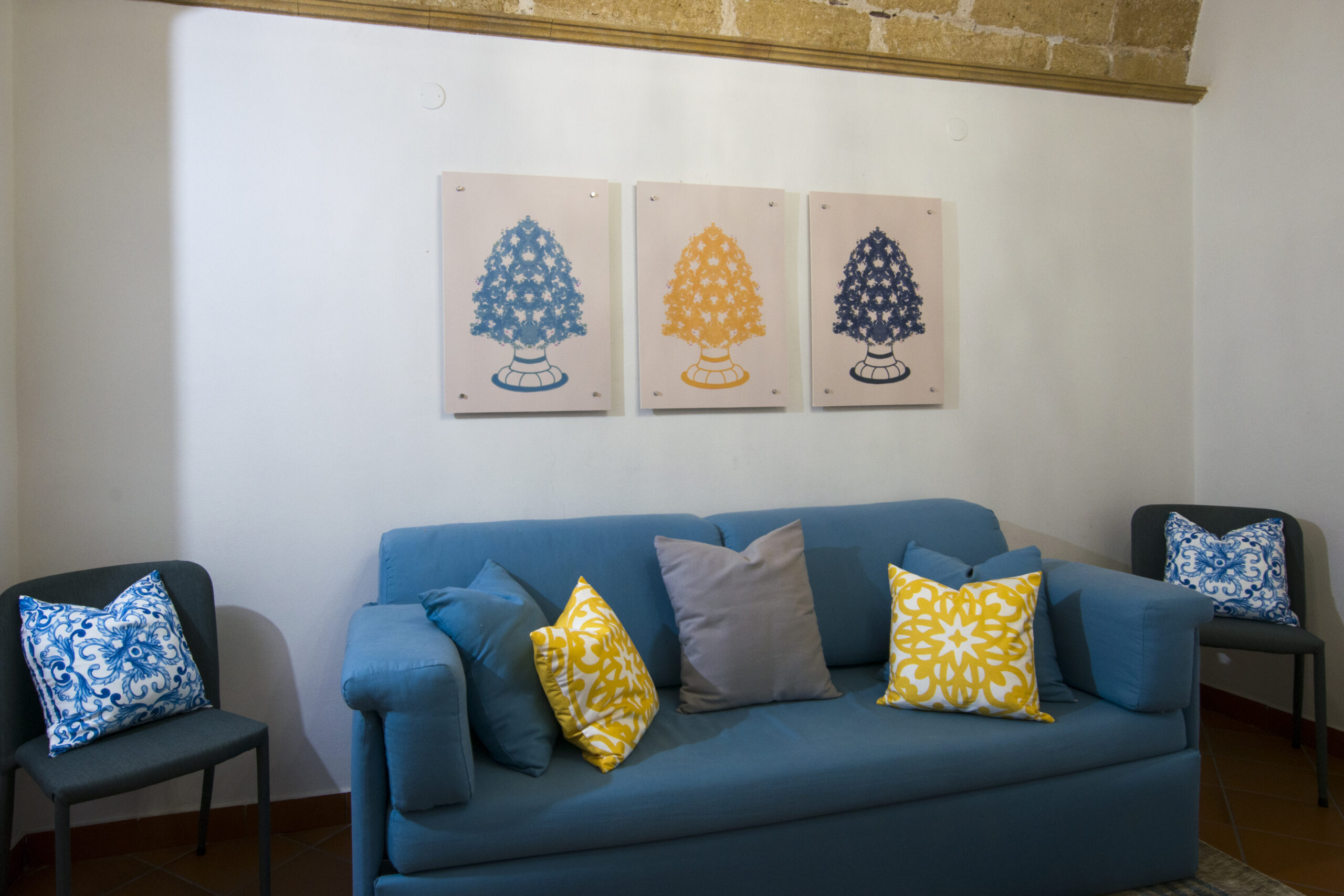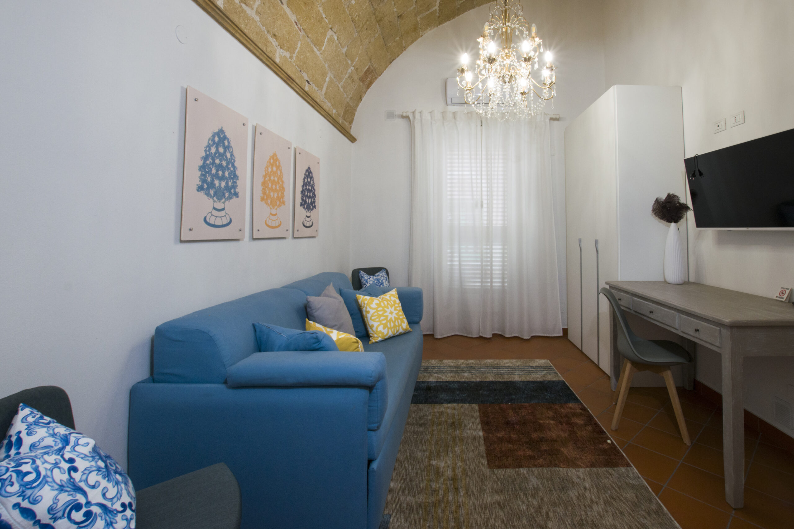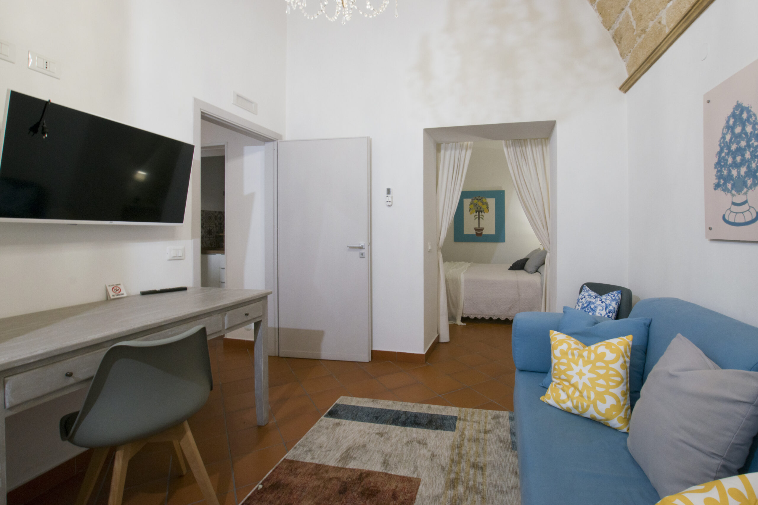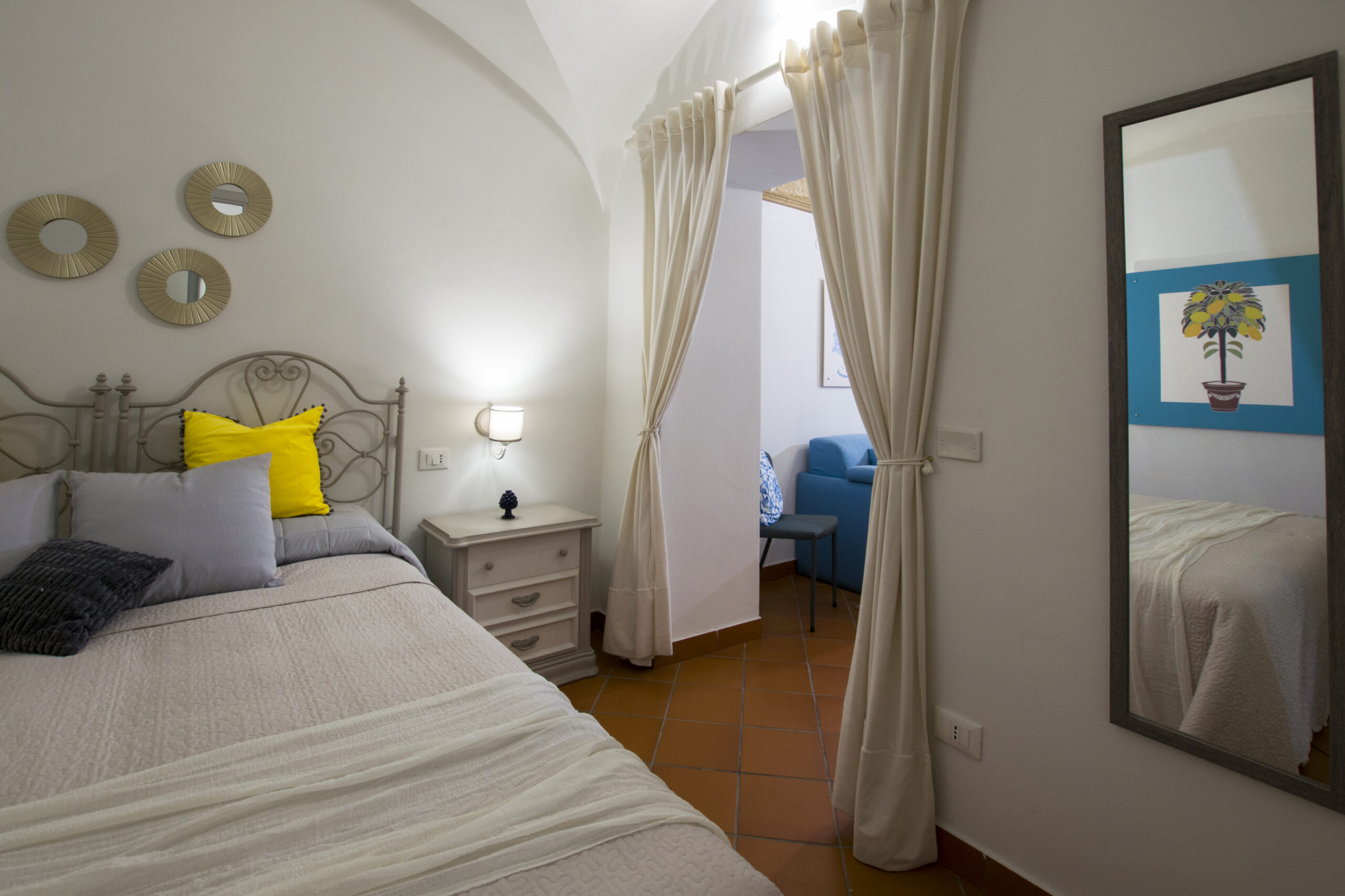 Soft tones, natural materials, and handcrafted details evoke the essence of Sicily, while the furnished terrace offers moments of relaxation after a day spent between sea and culture.